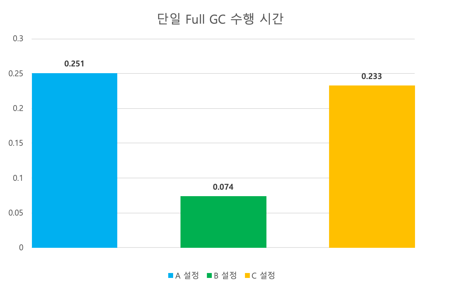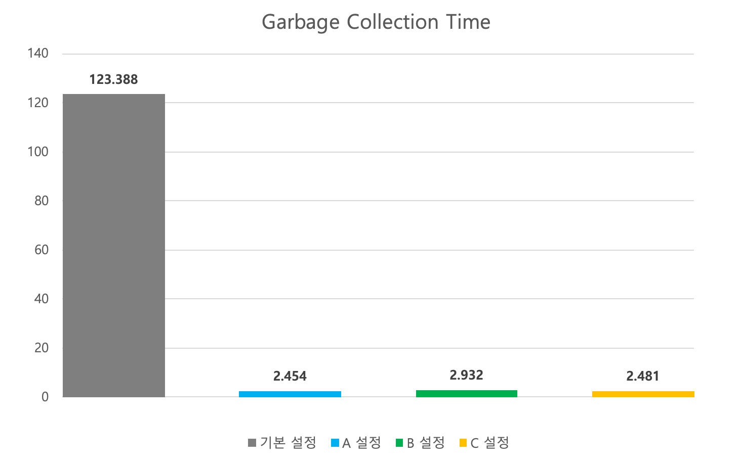 - Full GC 수행 시간을 비교해보면 기본 설정은 다른 설정에 비해 수행 시간이 매우 높은 것을 확인 할 수 있습니다.